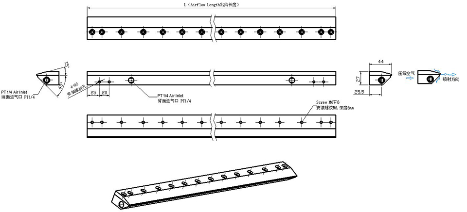 鋁: 鋁制超級氣刀適用于不存在腐蝕或污染因素的各種環(huán)境。帶塑料墊片的航空級鋁結(jié)構(gòu)非常耐用,適用于一般用途。使用的不銹鋼螺釘耐腐蝕。它內(nèi)部墊片可以承受高達 82°C 的溫度。如需承受更高的溫度,出氣間隙可以直接加工在氣刀上面,采用無墊片形式,可耐150°C高溫。