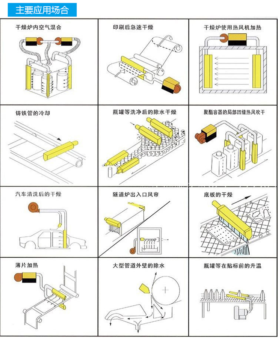 傳統(tǒng)吹氣應(yīng)用產(chǎn)品有諸多弊端,如:吹出的氣流不均勻;壓縮空氣消耗量非常大;雖然具備強勁的沖擊力,但噪音水平過高,嚴重影響現(xiàn)場操作人員的健康;以電能為動力的吹氣產(chǎn)品又往往需要經(jīng)常維護,并且使用壽命短等問題。