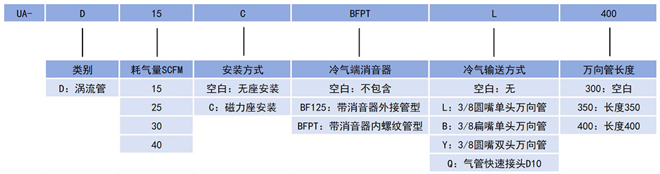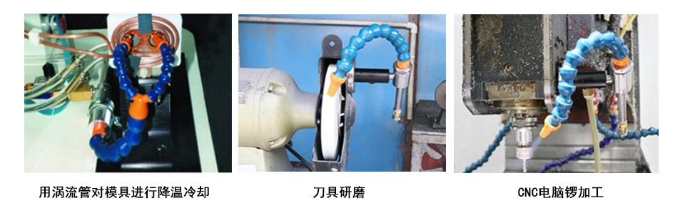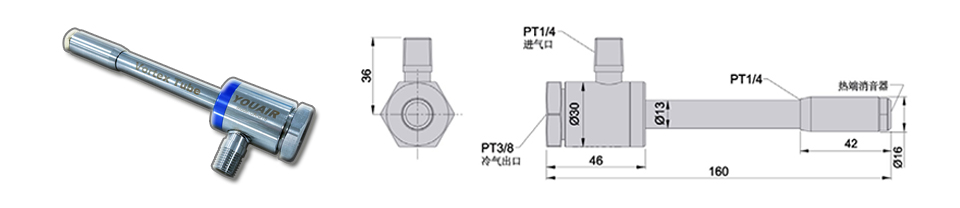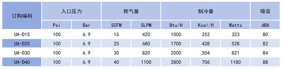 YOUAIR渦流管只輸入通用壓力(6-10 Bar)的壓縮空氣,通過(guò)渦流管轉(zhuǎn)換,一端產(chǎn)生冷空氣(在干燥空氣的前提溫降可達(dá)-46°C),一端產(chǎn)生熱空氣(溫度可達(dá)127°C)。 流量從0.06M3/min 到 2.8 M3/min. 制冷量可以達(dá)到6000 Btu/hr. (1512 Kcal / hr.)